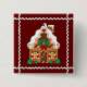 A sweet gingerbread house decorates this holiday button, pin. The design is from an original illustration.