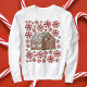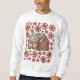 Sweatshirt features an original marker illustration of a gingerbread house, surrounded by swirls of red-and-white peppermint candies. Perfect for an Ugly Christmas Sweater party!