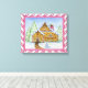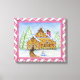 A detailed gingerbread house is the focal point of this canvas art print. The image is from an original illustration.