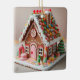 This photo features a gingerbread house with candy decorations. Sugar, spice, and everything nice. This gingerbread house is a candy lover's dream! There is a Christmas tree and presents on the side of the house. The house is sitting on a table and is surrounded by a festive atmosphere.