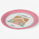 This cookie exchange paper plate features a festive Gingerbread house decorated with pink, aqua and teal gumdrops on a white background with a pink and white polka dot outer border. You can personalize with your family name and year. Coordinates with the Gingerbread Party collection.