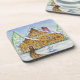 A cute gingerbread house decorates this set of holiday coasters. The design is from original art.