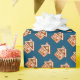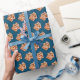 Gingerbread house cookie pattern Christmas Wrapping Paper. Custom color gift wrap rolls for friends and family. Cute winter holiday design with ginger bread sweets. Cute drawing of brown ginger house cookie with colored candies. Blue background.