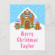 Gingerbread House Pink and Blue Merry Christmas Holiday Postcard