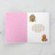 This cute and festive birthday card can be personalized with a name or title such as daughter, granddaughter, niece, friend etc. The design features a cute gingerbread house decorated with pink and green Christmas candy. Beside it are adorable gingerbread men with gifts, dressed in Santa hats and a scarf. In the background is a bright pink winter sky with elegant falling snowflakes. The text is in a bold and festive font. This is perfect for Christmas and the winter holiday.