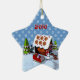 This design features an illustrated Gingerbread House with candies and cookies, a snowman, snow tipped trees and a sleigh full of gifts.