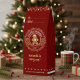 Bring a little holiday magic to every morning with this charming custom coffee design. The rich red backdrop sets the stage for elegant gold accents, featuring a cozy winter cabin on the back and an adorable gingerbread motif on the front. Personalization is simple — add your family name, year, or a special message on the “To/From” gift panel to create a heartfelt, ready-to-give Christmas treat. Perfect for families, small businesses, teachers, clients, or anyone who loves gifting seasonal coffee with a warm, whimsical touch. Search ID1217 to see other products in this Christmas coffee design set. Note: design adapted from generative content.