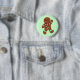 A cute gingerbread boy, with accents of mint and chocolate, is strolling along on this holiday button, pin. The design is from an original illustration.