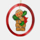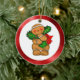 Christmas Ornament is shown in a round shape with a cute holiday gingerbread man print.