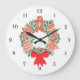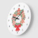 This charming wall clock is decorated with a watercolor of a Christmas Wreath decorated with gingerbread cookies and seasonal foliage.