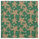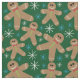 This Christmas fabric features gingerbread man pattern con dark green background. The design is accented with small, modern snowflakes.