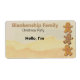 Help your guests remember or learn names at your holiday gathering by using a paper label name tag featuring three gingerbread cookies on the right border. The shipping label size and design allow room for writing in the attendee's name at the party. Using a matching color pen or marker at your gathering for the handwritten name can complement the whole design. Personalize the text, remove any text or edit using the design tool to select a font style, size, and color you prefer.