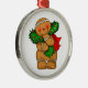 Christmas Ornament is shown in a round shape with a cute holiday gingerbread man print.