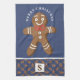 Gingerbread Man Navy Monogram Merry Christmas Kitchen Towel