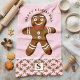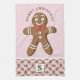 Gingerbread Man Pink Monogram Merry Christmas Kitchen Towel