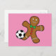 Gingerbread Man Playing Soccer Holiday Postcard