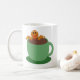 A cute gingerbread man relaxing in a hot chocolate cocoa hot tub mug fun cookie character Christmas cartoon fun baking around the holidays customizable add a saying merry Xmas happy holidays motto fun season’s greetings extra merry ginger cookie statement fun deluxe ceramic coffee tea or cocoa mug. Get a funny holiday cup today.