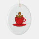 Gingerbread Man Relaxing In Hot Chocolate Red Cup Ceramic Ornament