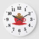 Gingerbread Man Relaxing In Hot Chocolate Red Cup Large Clock