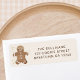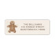 This gingerbread return address label features watercolor cookies, gold foliage, and stylish script typography. Easily customizable. Original Watercolor © Michele Davies.