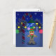 This dapper gingerbread dude in a top hat is hanging out under a peppermint stick lamp in a clear, star-studed evening; surrounded by lollipop lights and houses made of gingerbread and candy.