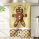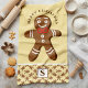 Gingerbread Man Yellow Monogram Merry Christmas Kitchen Towel