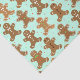 Festively decorated gingerbread men create a sweet pattern for Christmas gift giving. Shown here on gift wrapping tissue paper with a changeable mint green background color. You can choose your favorite color and adjust the size of the pattern. These gingerbread men would be great for wrapping holiday treats, decorating, and adding to gift bags.