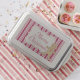 Peppermint stripes and a cute Christmas cookie decorate this festive holiday dessert pan.