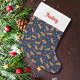 Whether you're celebrating Christmas in your RV or at home, celebrate in style with this personalized stocking. It has a pattern of gingerbread campers along with festive candy against a navy blue background. This stocking is ready to be personalized with a name in bold red lettering.