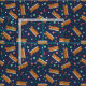 It's the perfect Christmas fabric for crafting fits for RV owners. This fun patterned material has illustrations of gingerbread RVs. Along with the festive class C campers are illustrations of assorted Christmas candies against a navy blue background.