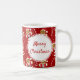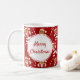 Mug with a smiling gingerbread Santa and candy cane pattern and the words “Merry Christmas”. The words can be customized as you like.