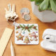 The key chain is made of metal and really sturdy. The flower design is really cheerful. The logo and colors are clear and crisp!