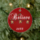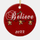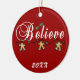 A string of gingerbread boys and text that reads "Believe" on a keepsake holiday ornament you can personalize with the current year.