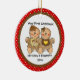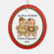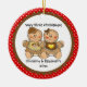 Twin's First Christmas Ornament features the cutest little pair of gingerbread twins, a girl and boy set on a red gingerbread man background! Personalize with your baby information and date and you're all set to go! Wonderful dated keepsake gift for your baby's 1st christmas.