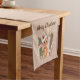 Gingerbread With a Cherry On Top Candycane Short Table Runner. Cute gingerbread man with the biggest eyes and smile, standing close by his candy canes wearing a cherry on top hat. Easily edit your greeting, family name or change background color to match your holiday decor.