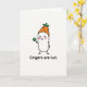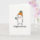 This greeting card features a simple white, capsule-shaped character outlined in black, standing on a wide white background with an affectionate, flirty little smile and pink blush on its cheeks 💚. Perched on its head is an orange, carrot-shaped hat with leafy green tops, turning the “ginger” joke into a cute visual cue. One thin, black-lined arm lifts a bright green four-leaf clover as if offering it to someone special, like a small lucky gift between friends or partners ☘️. The face is minimal—two dot eyes and a curved mouth—but the rosy cheeks make it feel like it’s sharing a private compliment. Below the character, the text “Gingers are hot.” sits centered near the bottom in rounded black lettering, easy to read against the white space. The limited palette of black, white, orange, green, and pink keeps the focus on the character and the cheeky message. A friendly line invites you to share St. Patrick's Day sentiments. The clover is a bright, solid green shape held up in the raised hand, with tiny black legs and feet planted neatly beneath the character.