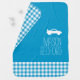 Cute simple white car graphic art in blue and white with a gingham pattern on the reverse baby blanket. Would make a great baby shower gift, or newborn present for a little newborn baby boy. Personalize with your baby's name. Original art and design by Sarah Trett for www.mylittleeden.com