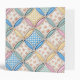 A seamless background featuring pastel gingham patterns and floral prints in a cathedral window quilt design.