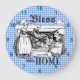gingham check blue and white Bless This Home clock