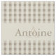 Checkered Check Pattern Print with single letter monogram and name, great for boys room decor at a kid's room with a fresh, preppy or nautical feel. Khaki sand brown beige monogrammed fabric for many uses. Large scale pattern. Khaki sand beige tan and mushroom color neutral tone on tone check gingham pattern.