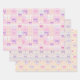 Pretty pink, yellow and purple gingham, lace and bows baby shower or girls birthday wrapping paper sheets. Set of three coordinating sheets.