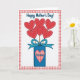 This design shows a bouquet of five red heart shapes rising like flowers from a deep blue rectangular vase, with a tender, affectionate feel ❤️. A red-and-white gingham border frames the scene, giving it a cozy kitchen-table setting. Each heart has a dashed white outline like careful stitching, and the stems are warm golden lines that add a gentle shine. The vase is decorated with a lighter blue ribbon tied into a full bow, dotted with small white spots for a friendly, cheerful touch. Centered on the vase is a red-and-white gingham heart label, and the word “Grandma” sits neatly across it in dark blue flowing lettering. Near the top, “Happy Mother’s Day!” appears in dark blue lettering that stands out clearly against the light background, with a little extra flourish that feels affectionate 🌼. The overall palette stays with strong reds, crisp whites, and layered blues, and the bow’s loops and trailing ends curl outward beside the vase.
