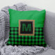 Gingham Green and Black Buffalo Plaid Monogram Throw Pillow