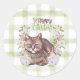 Gingham Happy Easter Cat Classic Round Sticker