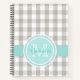 Pretty gray and white gingham complimented by a beautiful soft blue banner for you to add your monogram and name.