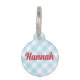 Adorn your pet's collar with this charming Gingham Pet ID Tag, a perfect blend of style and safety. This tag features a classic gingham pattern in a serene sky blue, reminiscent of warm summer days and picnics in the park. The customizable name space allows for a touch of personalization, ensuring your furry friend's identity is always on display. The tag is made to withstand the daily adventures of your pet. It's an accessory that’s as practical as it is picturesque.