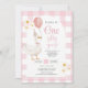 Gingham Pink Daisy One Silly Goose 1st Birthday Invitation