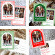 Gingham Pink Red Christmas Custom Arch 3 Photo Holiday Postcard