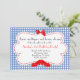Perfect simple wizard of Oz theme invitation. Country blue and white gingham with red ruby slippers and cute little red bow. Perfect for any OZ party.