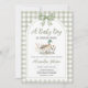 Gingham Sage Green Mallard Duck Baby Shower Invitation